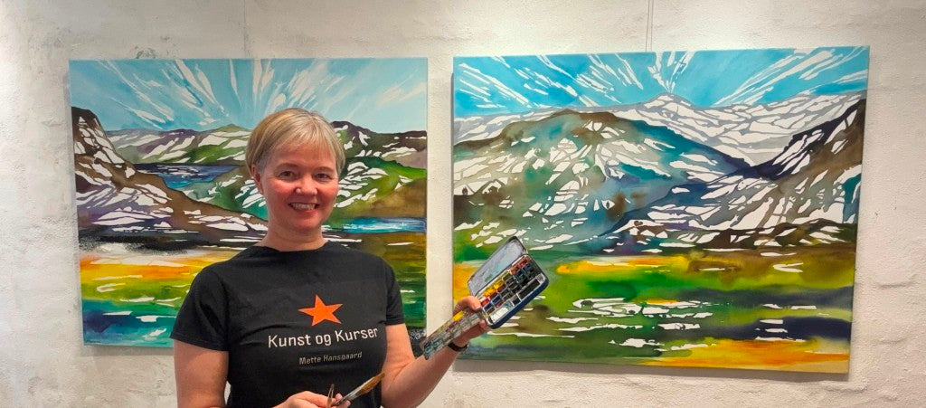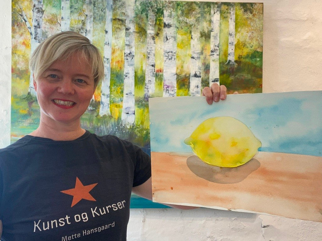 Mette Hansgaard underviser i sit atelier i København. Book plads til en introduktion og kom nemt fra start med at male med akvarelmaling. Alle kan være med. Hvis du har malet tidligere tilpasses dit niveau til dig