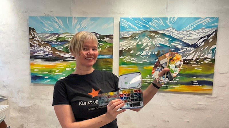 Mette er ekspert i at guide alle til at lære at male med akvarelmaling og på kurset akvarel for begyndere, starter vi med simple teknikker til at lære at styre farve og vandmængde.